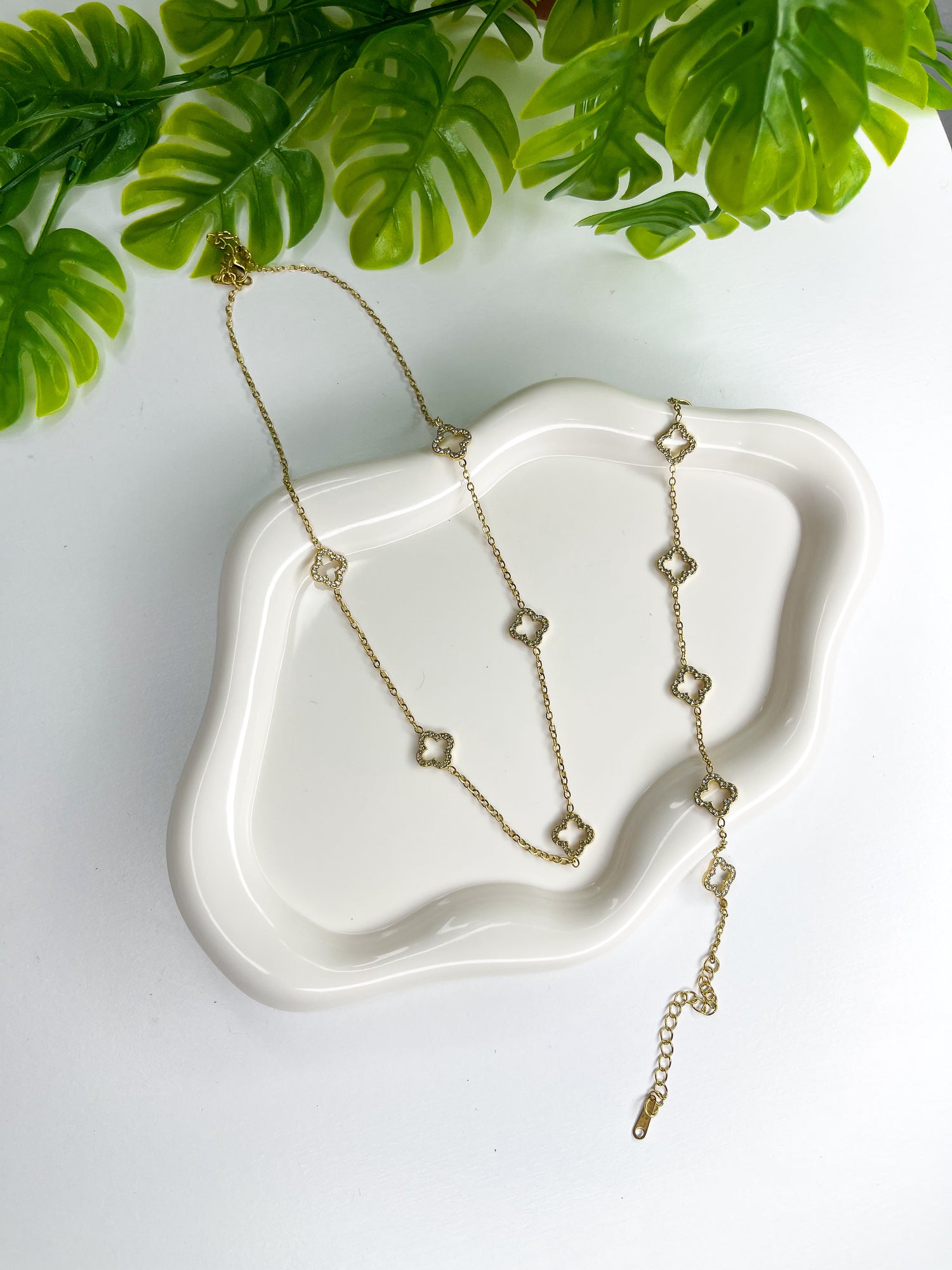 Colar Trevo Ônix Preto - Aço Inoxidável