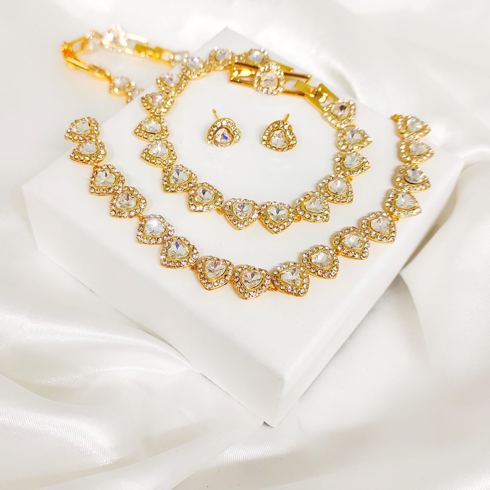 Contém: 1 colar,1 pulseira e 1 par de brincos.